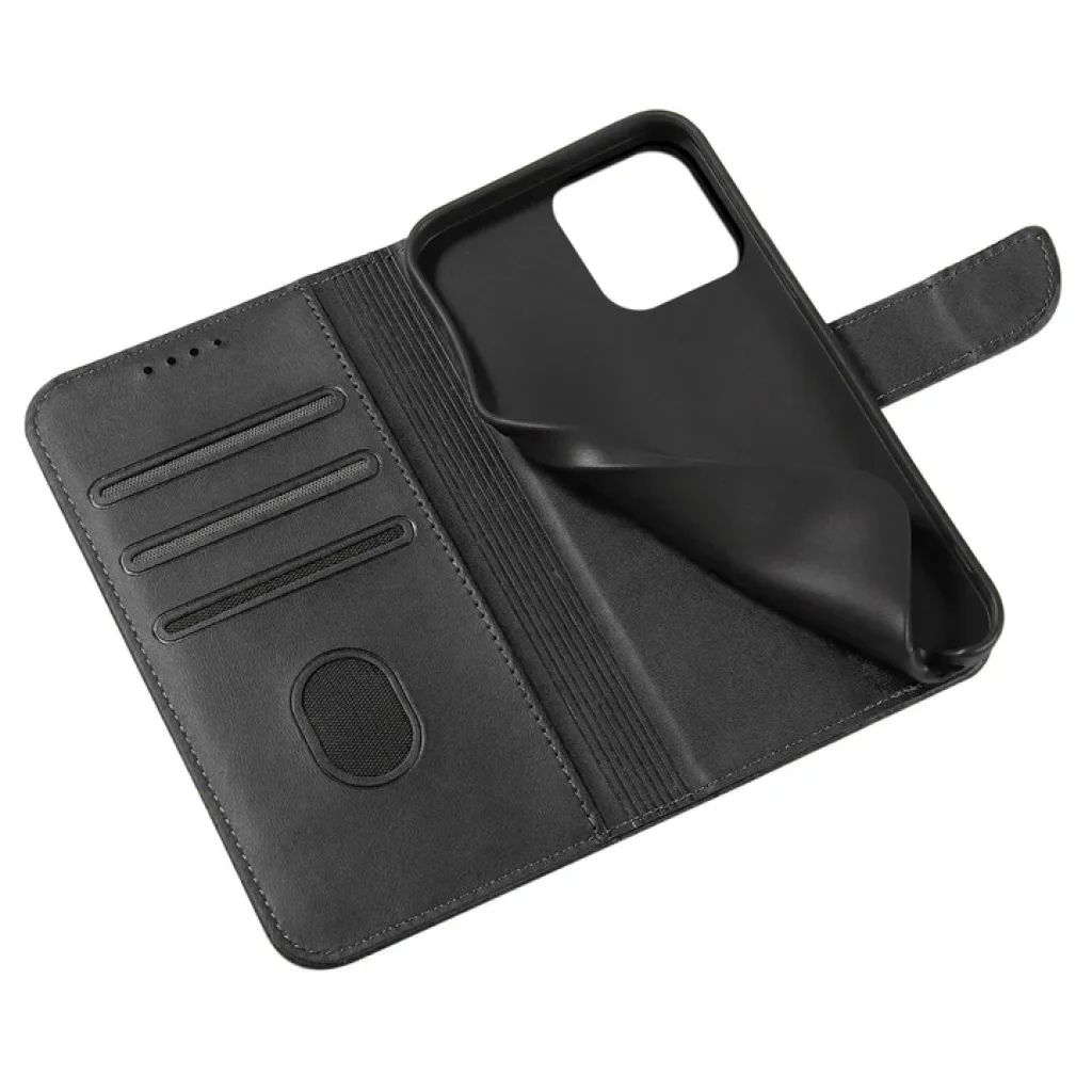 Honor 70 mágneses PU bőr fliptok kártyatartóval fekete Alphajack