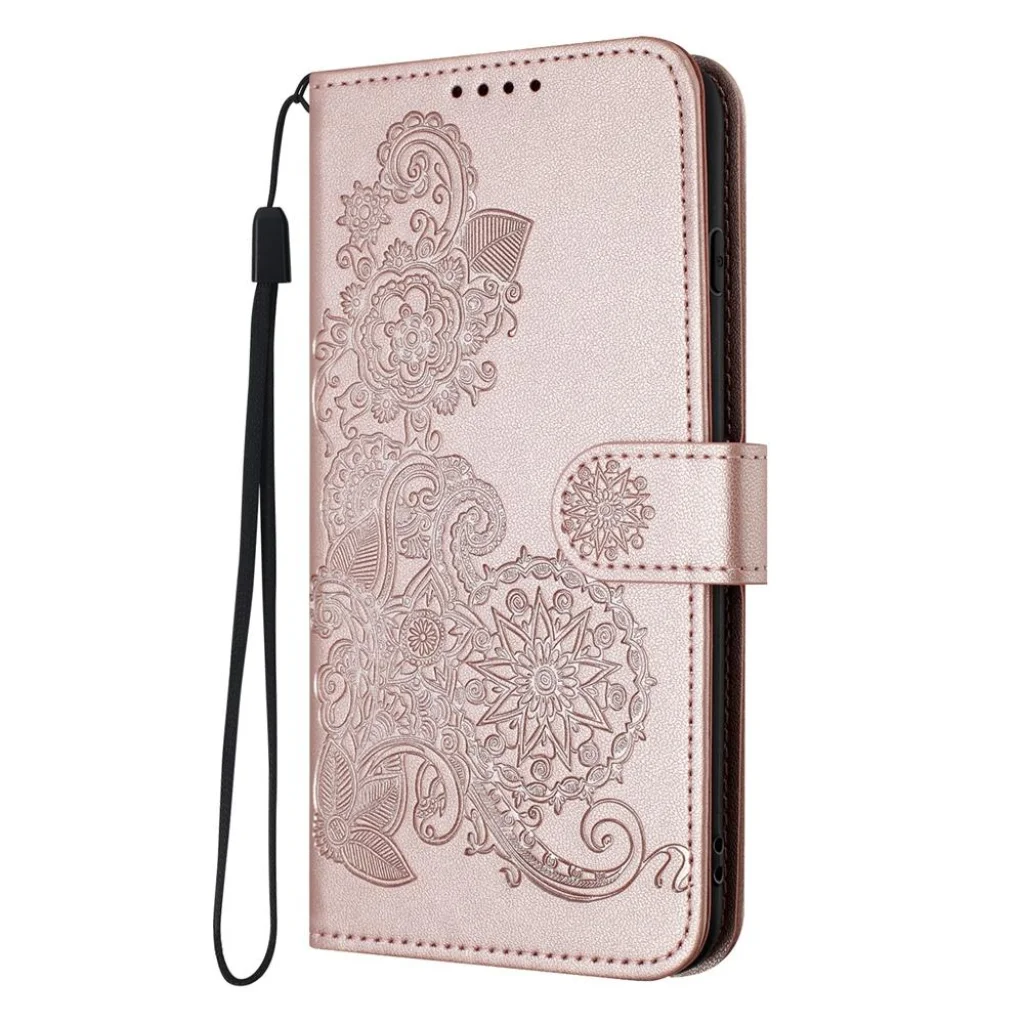 Honor X5c Plus datura virág mintás, dombornyomott flip tok – Rose gold