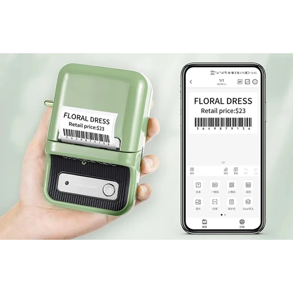 A Niimbot B21 hordozható címkenyomtató kiváló választás lehet a boltban, otthon vagy a munkahelyen. Festék nélküli működést tesz lehetővé, és másodpercenként több címke nyomtatására is képes. 1200 mAh-s akkumulátorral van felszerelve, ami hosszú üzemidőt biztosít. A készülék kezelését applikáció segíti, a gyors és stabil kapcsolatról pedig a Bluetooth 4.0 gondoskodik. A csomagban található egy tekercs is, amely elegendő 230 címke nyomtatására.