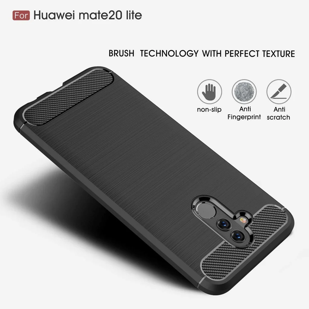 Huawei Mate 20 Lite Techsuit Carbon Silicone tok, fekete