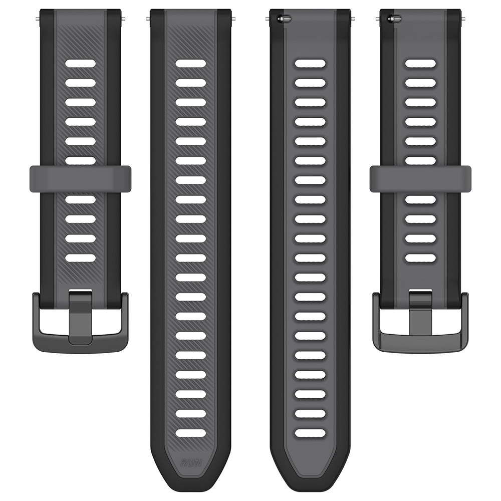 A karpánt sportos, kéttónusú kialakítással rendelkezik: a fő rész elegáns sötétkék színű, míg a csatlakozók és a csat strapabíró fekete árnyalatúak. A prémium szilikon anyag puha tapintású, mégis rendkívül ellenálló. A szíj felületén található finom textúra és a diszkréten elhelyezett "RUN" felirat nemcsak stílusos, hanem segíti a légáteresztést és az izzadság elvezetését, így intenzív edzések során is kényelmes marad.