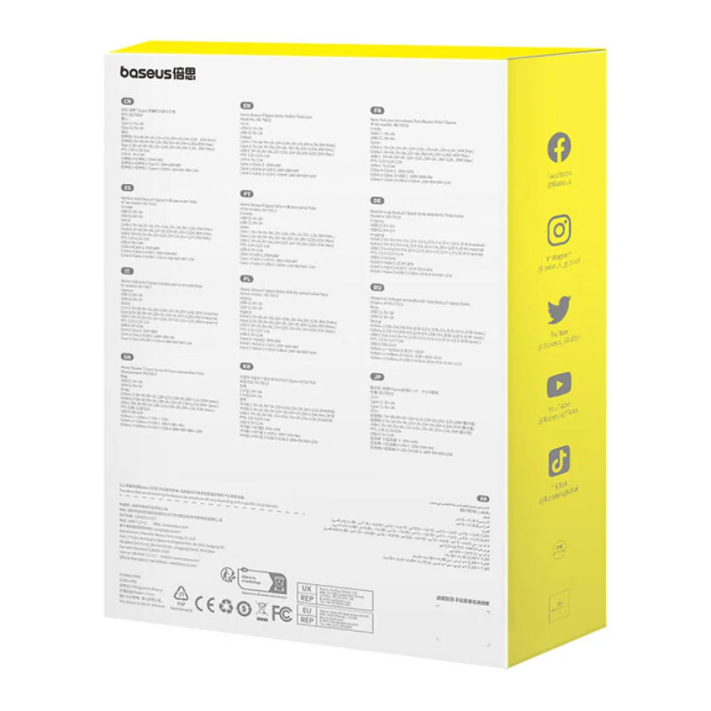 A Baseus Hub az első olyan eszköz, amely Tesla járművekhez készült és GaN töltési technológiát használ. Ennek eredményeként a töltés gyors, és nem melegíti túl az eszközöket. A 45 wattos teljesítményszint lehetővé teszi, hogy okostelefonját, tabletjét vagy laptopját rövid idő alatt újra feltöltse. A termék különféle gyors töltési protokollokat is támogat, beleértve a PD3.0, FCP, SCP, QC3.0 és AFC protokollokat. Emellett védelmet nyújt az eszközök számára túlfeszültség, rövidzárlat, túlmelegedés stb. esetén.