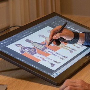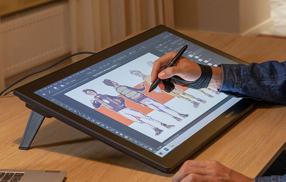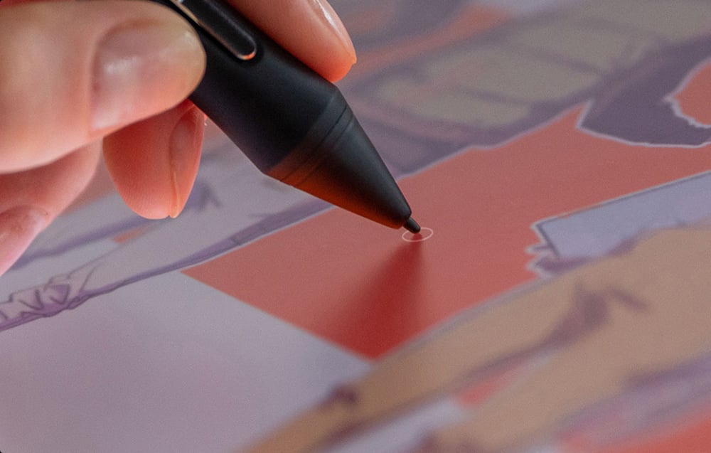 A Huion Kamvas Pro 27 egy zászlóshajó 4K UHD grafikus tábla, amely a stúdió precizitást kivételes kényelemmel ötvözi. A 27 hüvelykes IPS-kijelző 3840 × 2160-as felbontással és 300 nits fényerővel lenyűgöző képélességet és részletességet kínál. A széles, 178°-os betekintési szögek és az 1000:1 kontrasztarány minden projektet tisztává tesz, perspektívától függetlenül. Az új Canvas Glass AG maratott üveg matt felületű és teljes laminálású üveggel ellátott Canvas Glassnak köszönhetően a képernyőn való rajzolás a papírral való természetes érintkezést idézi, a csökkentett tükröződés pedig növeli a kényelmet még órákon át tartó munka közben is.