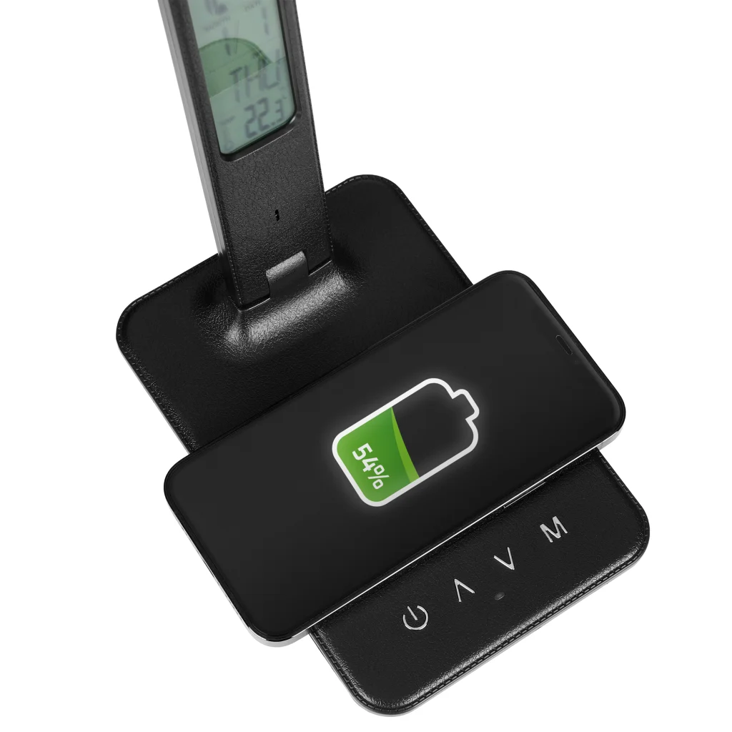 A Huslog multifunkcionális lámpa hasznos segítőtárs távmunkához vagy tanuláshoz. Az állítható szög lehetővé teszi, hogy pontosan az egyéni igényekhez igazítsd. Az asztali lámpa egy könnyen olvasható LCD kijelzővel van felszerelve, amely jelzi a dátumot, időt és a hőmérsékletet. Az éjszakai mód használatával a kijelző háttérvilágítása kikapcsolható anélkül, hogy a lámpát kihúznánk az aljzatból. Beépített induktív töltővel rendelkezik a telefon tartójában.