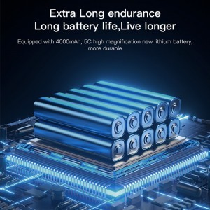 - Hosszú akkumulátor élettartam: A beépített 4000mAh-s, 5C nagymagnifikációjú lítium akkumulátor kivételesen hosszú üzemidőt és tartósságot garantál, így több eszközt is felfújhat egyetlen töltéssel.