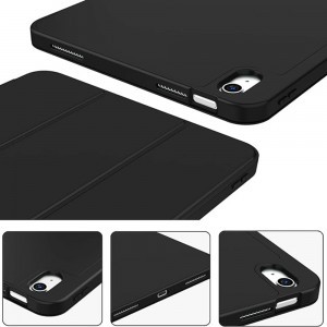 - Automatikus ébresztés/alvás: A tok mágneses előlapja támogatja az iPad intelligens ébresztés/alvás funkcióját, amely kíméli az akkumulátort: felnyitáskor automatikusan bekapcsolja, lecsukáskor pedig kikapcsolja a képernyőt.