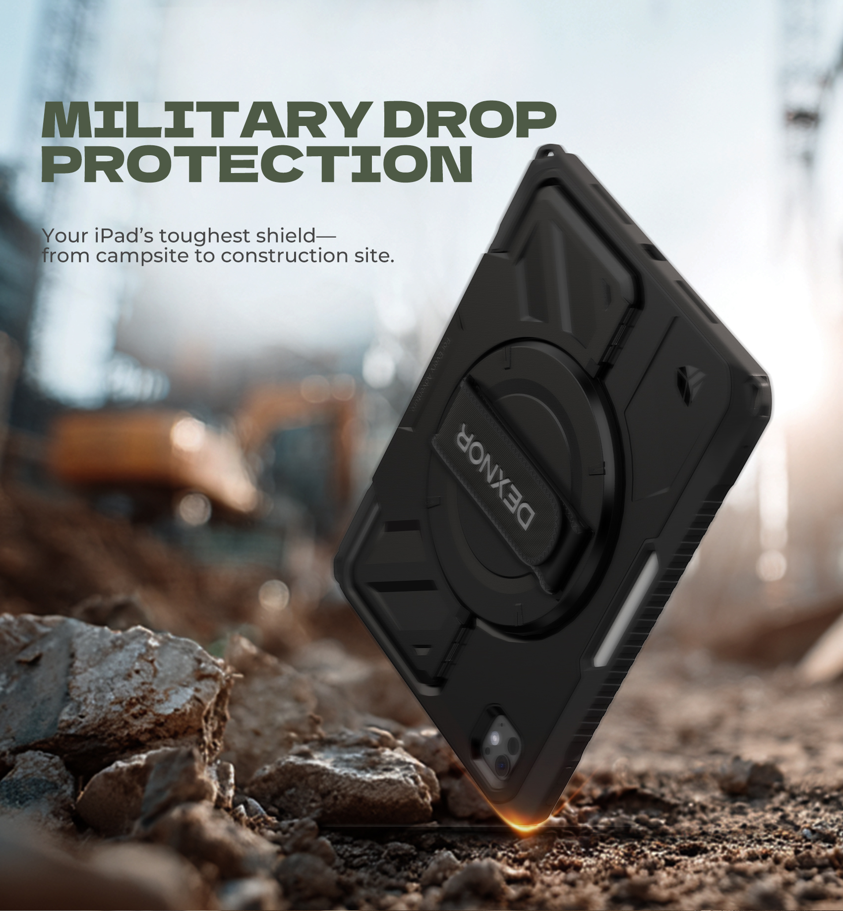 Az iPad Pro 11 (M4) Dexnor tokja a legkeményebb pajzs, melyet a készülékére adhat. A katonai szintű ejtésvédelemnek köszönhetően iPadje biztonságban lesz a mindennapi ütődésektől, karcolásoktól és a váratlan leejtésektől, legyen szó kempingezésről vagy egy forgalmas építkezésről.
