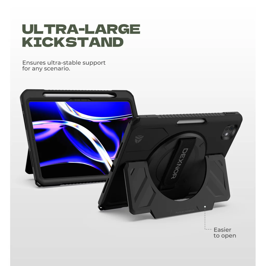 A Dexnor tok masszív, megbízható és készen áll arra, hogy elkísérje iPadjét a legextrémebb kalandokra is. Robusztus kialakítása és funkcionalitása révén tökéletes választás azok számára, akik maximális védelmet és sokoldalú használhatóságot várnak el tabletjüktől.