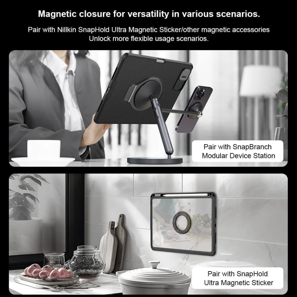 A mágneses funkciónak köszönhetően könnyen rögzíthető más mágneses felületekre vagy kiegészítőkre, ami maximális rugalmasságot biztosít a használatban.