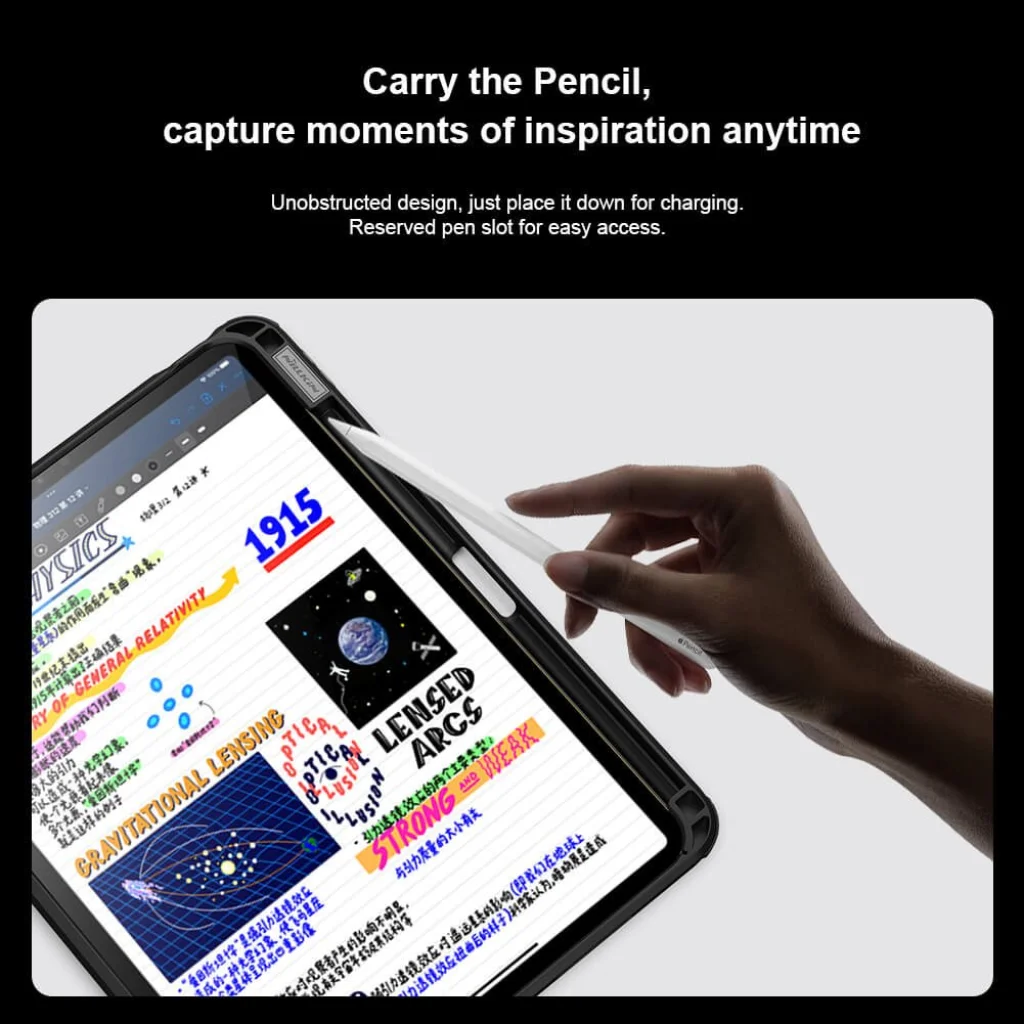 A tok külön stylus tartóval is rendelkezik, hogy mindig kéznél legyen, és azonnal rögzíthessen minden inspirációs pillanatot.