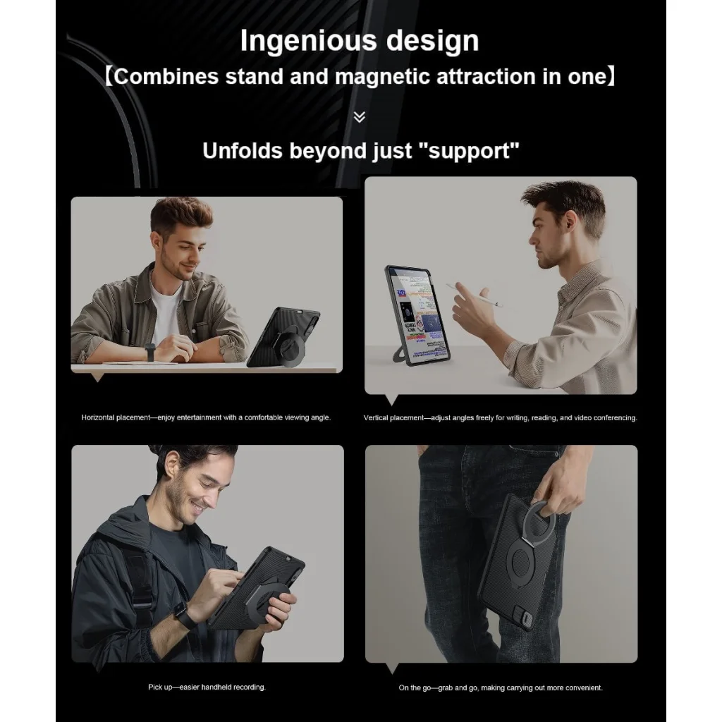 A CamShield Pad hátlap egy multifunkcionális tok, amely a stílust, a védelmet és a praktikus funkciókat ötvözi egyben a táblagépek számára.