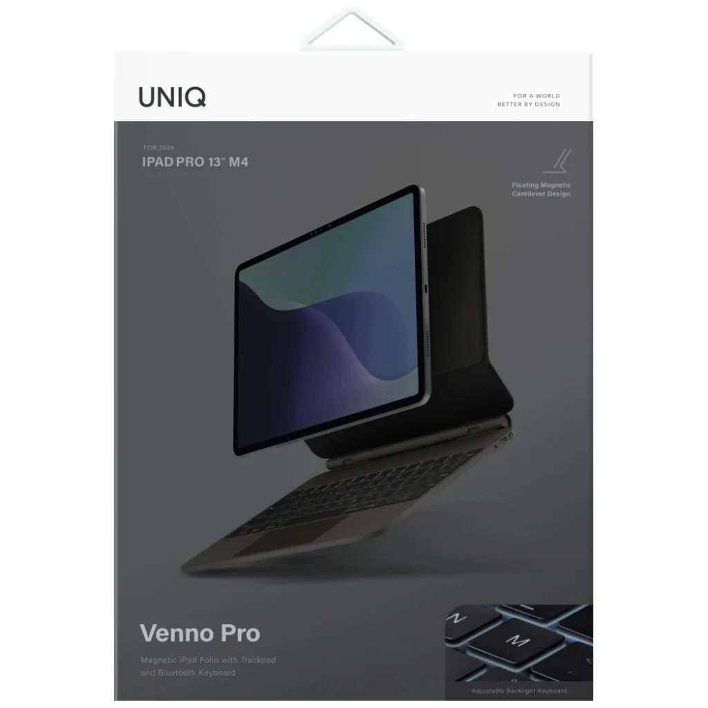 Fedezd fel a UNIQ Venno Pro Mágneses Okos Tokot Billentyűzettel - a tökéletes kombinációt, amely egyszerre biztosítja a védelmet, a funkcionalitást és az eleganciát. Ez a tok tökéletes betekintési szöget kínál az iPad-edhez, a beépített billentyűzet és érintőpad pedig zökkenőmentes kapcsolatot tesz lehetővé. A Venno segítségével iPad-ed teljesértékű eszközzé válik a munkához, alkotáshoz és szórakozáshoz.