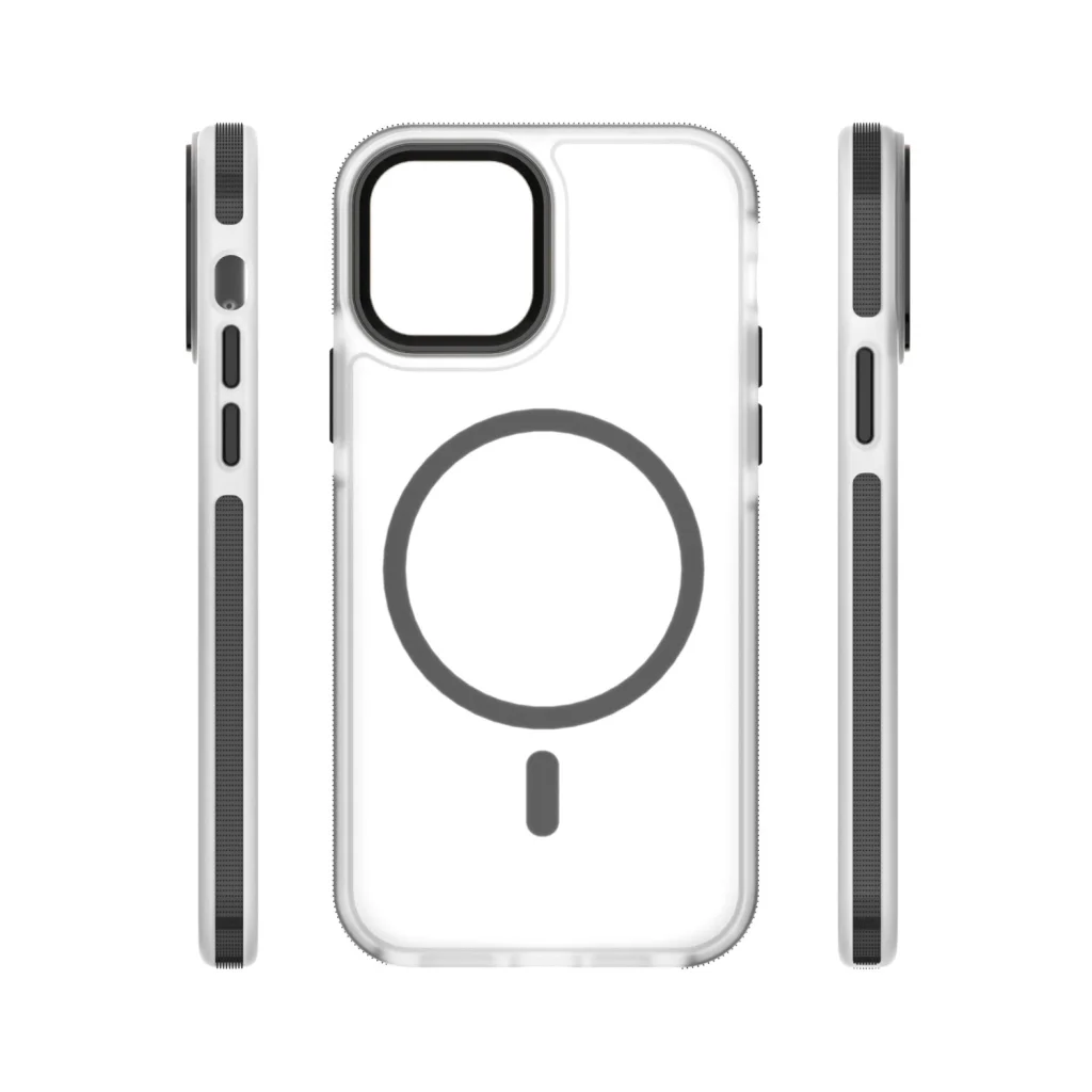 - A kritikus elemek megerősített védelme: A szerkezet tartalmaz egy kiemelkedő kameratartót, amely kulcsszerepet játszik a lencsék megkarcolódásának és sérülésének védelmében. A 2300 Gs mágnes színben illeszkedik a tok többi részletéhez, lehetővé téve a kényelmes zökkenőmentes integrációt a MagSafe-szel, így könnyebb a kompatibilis töltők és kiegészítők használata.