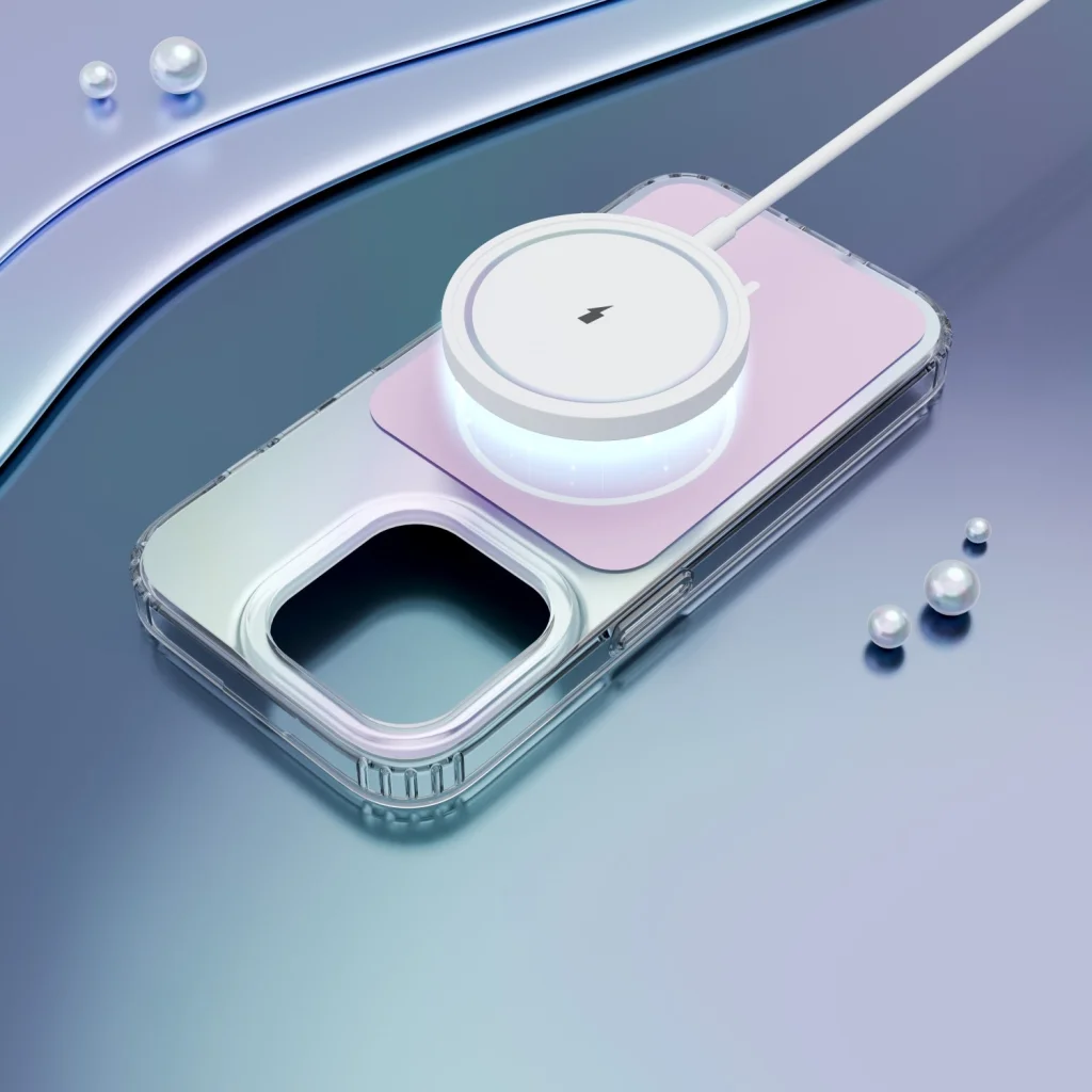 Kompatibilitás mágneses töltőkkel és tartókkal: A tok kulcsfontosságú előnye az integrált, erős 2300 Gs mágnes. Ez biztosítja a zökkenőmentes kompatibilitást a MagSafe technológiával — a vezeték nélküli töltőktől és tárcáktól kezdve az autós tartókig.