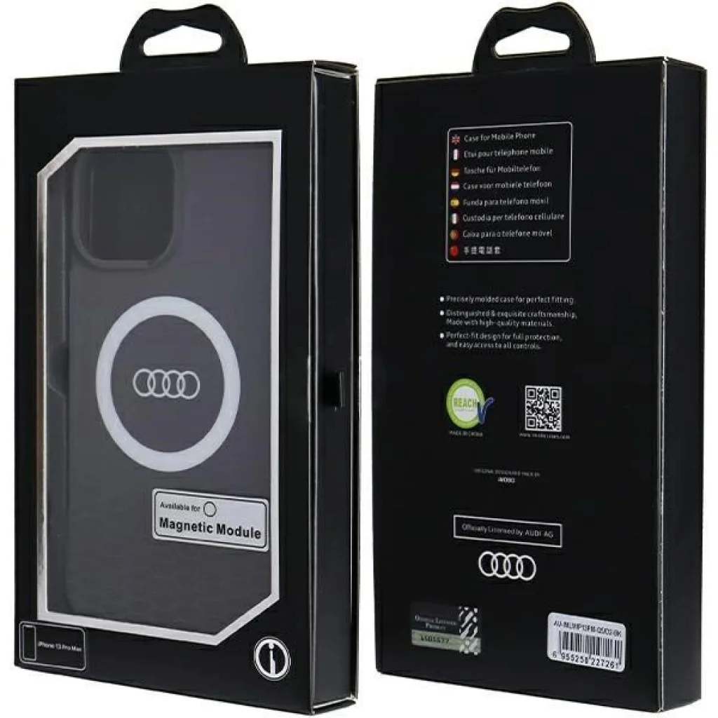 Az AUDI IML Nagy Logós MagSafe tok az iPhone-ok számára készült divatos védőtokok kollekciója, amely a német autóipari óriás, az Audi elit márkájával együttműködésben készült. Ez a minimalista tok tökéletes ötvözete a hihetetlen funkcionalitásnak és az elit megjelenésnek, miközben maximális védelmet biztosít a készüléked számára. Légy részese egy rendkívül divatos kiegészítőnek az iPhone-odhoz! A tok szokatlan megjelenésével vonzza a figyelmet. Ez a kollekció még a legkifinomultabb ízléseket is elvarázsolja - minden tokra jellemző a finom lépték minta, mely az alsó résznél hangsúlyos, majd felfelé elmosódik. A kollekció fő dísze egy nagy ezüst gyűrű, benne egy nagy Audi logóval - ez hangsúlyozza a termék elitizmusát és hitelességét, valamint a kollekció funkcionalitását. A grafikákat az IMD (In-Mould-Decoration) technológiával alkalmazták a tokokra - forró préseléssel a tok felületére nyomtatták őket, majd TPU réteggel vonták be, amely ellenállóvá teszi őket a kopással szemben, így hosszabb ideig megőrzi kifogástalan megjelenésüket.