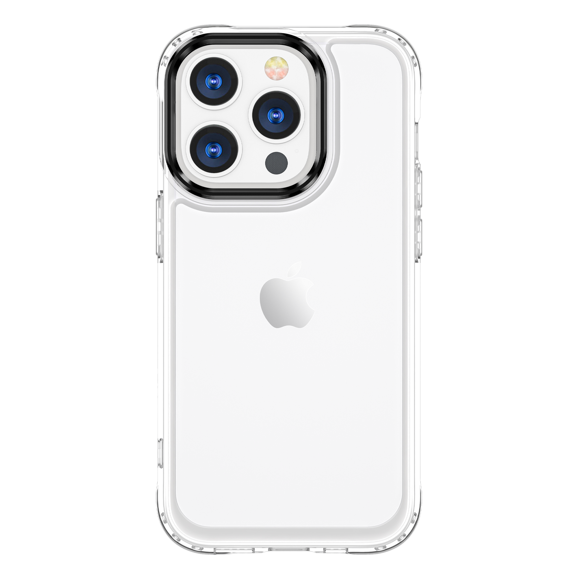 iPhone 14 Pro Max fokozott védelmet nyújtó átlátszó TPU tok fekete kerettel a kamera körül Alphajack