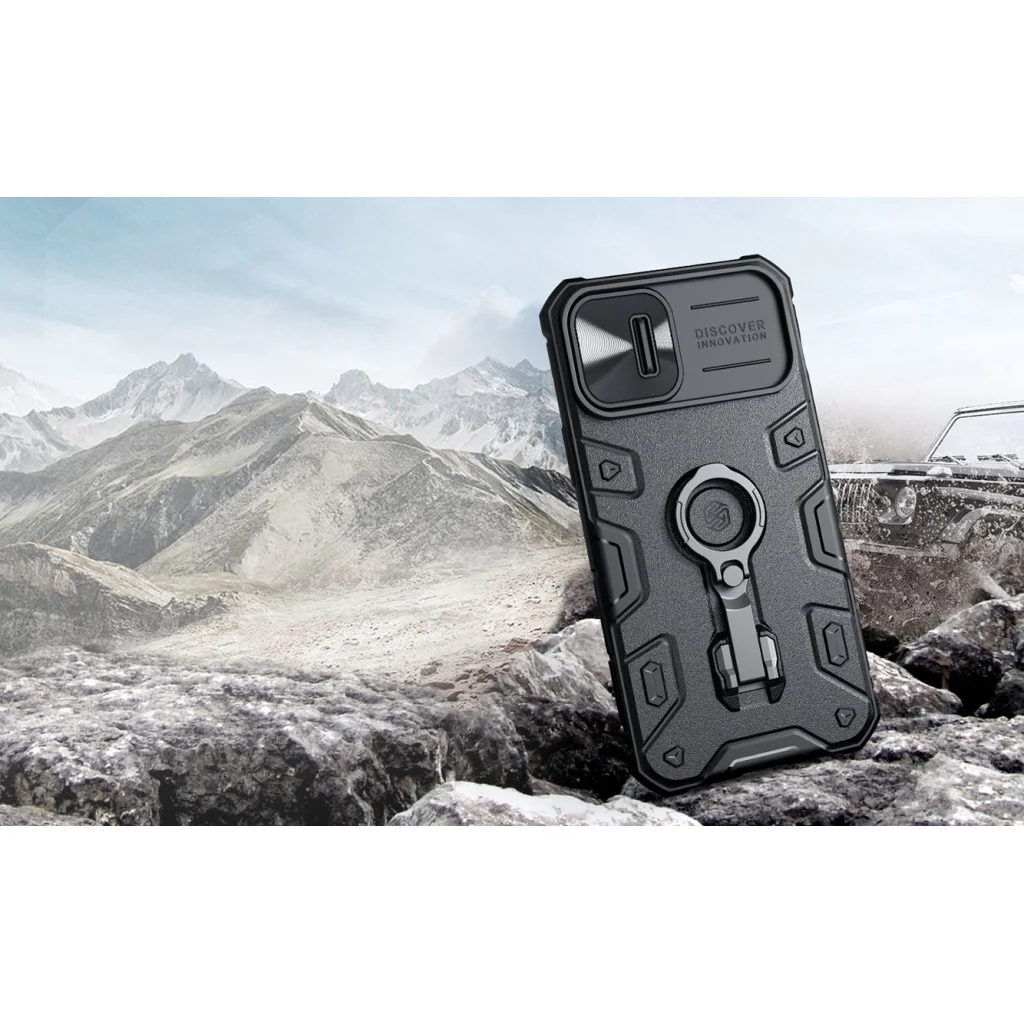 Nillkin CamShield Armor telefon hátvédő extrém strapabíró kivitelben, plusz egy elcsúsztatható kamerafedél és egy állvány a hátoldalon, gyűrűvel. A CamShield Armour PRO verzióban ez az állvány állítható karral van felszerelve, amely függőlegesen és vízszintesen is támasztja a telefont. A tok különlegessége a csúsztatható kameraborítás, amely védi a kamera lencséjét. A burkolat két anyagból áll. Rugalmas és strapabíró TPU anyag, és tömör műanyag profilozással a hátoldalon. Ezen anyagok kombinációjának köszönhetően telefonja a lehető legmegbízhatóbban védve lesz. Ha megalkuvást nem ismerő védelmet, masszív megjelenést és minden időjárási körülményekre, minden alkalomra használható burkolatot keres, a Nillkin CamShield Armor a megfelelő választás!