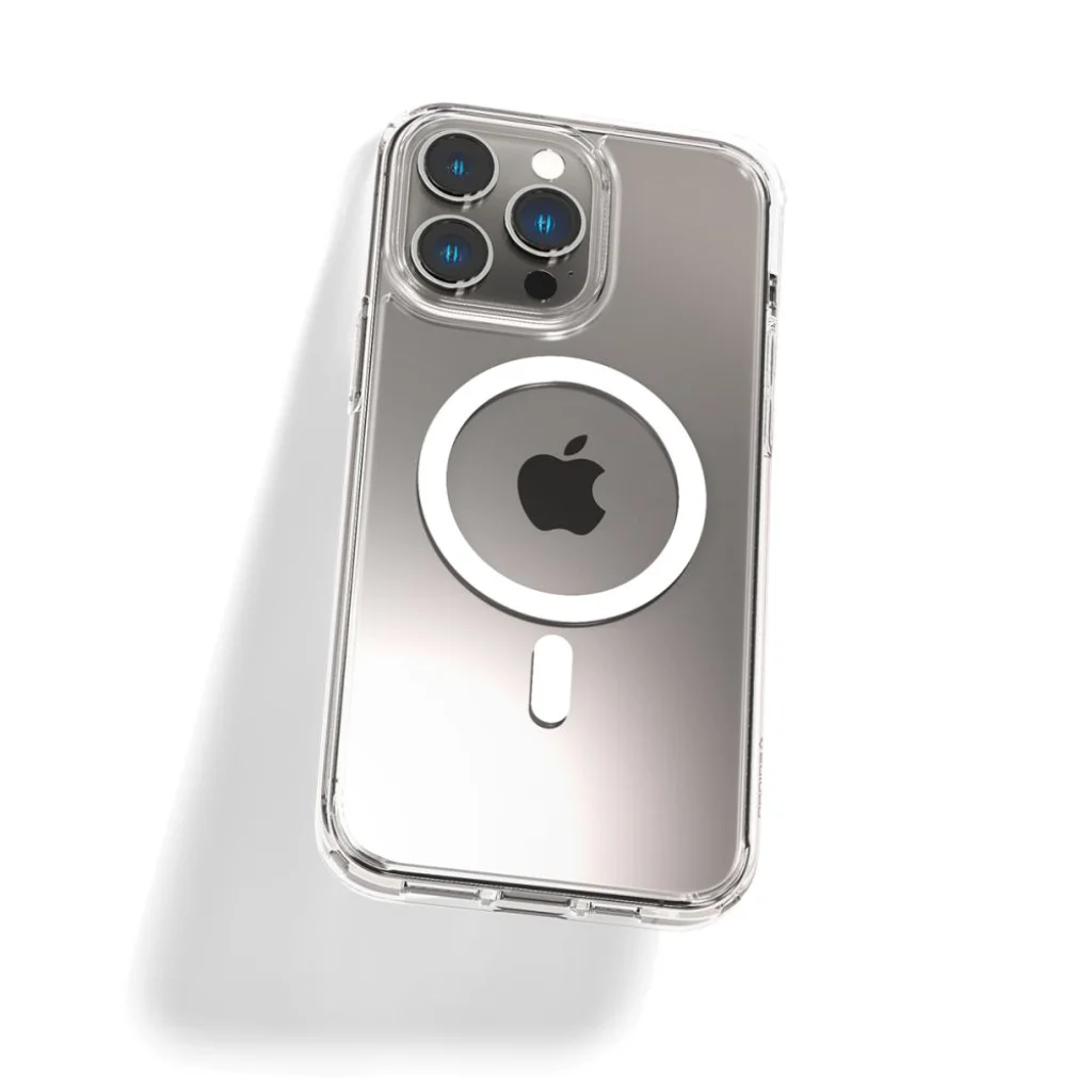 Prémium minőségű PC és TPU anyaghasználattal készült, hybrid tok. Sarkainál Air Cushion Technology™-val védve, mely az ott ért ütődéseket könnyedén csillapítja. Teljes körű védelmet biztosít a mindennapos használatból származó sérülésekkel szemben. MIL STD 810G-516.6 védelmi fokozat minősítéssel. Mágneses hátlapi kiegészítővel, mely kompatibilis a MagSafe töltőkkel.