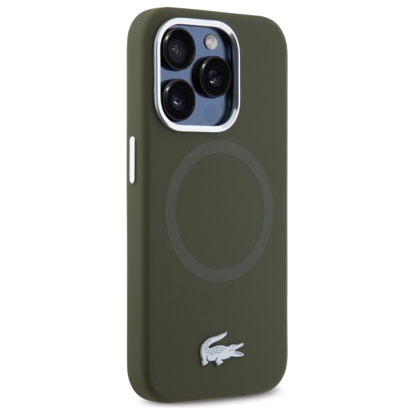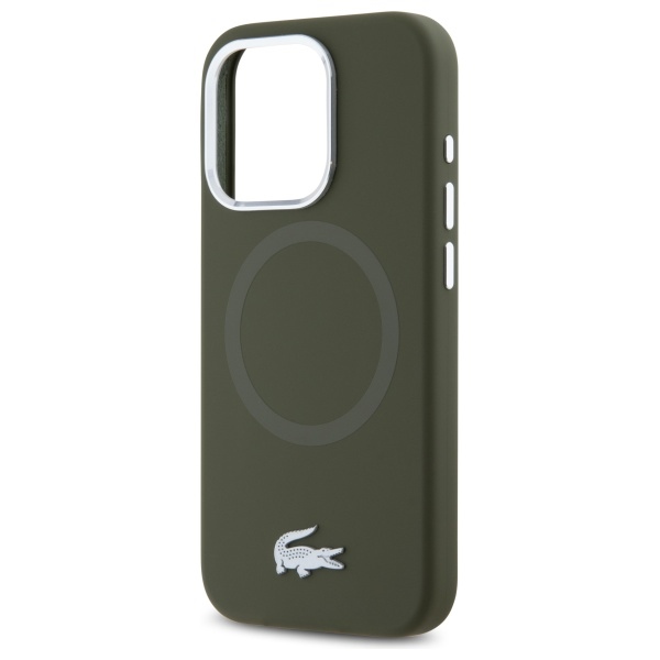 iPhone 15 Pro Max khaki kemény tok Lacoste LCHMP15XSMAB Silicone Croco Logo MagSafe tok
