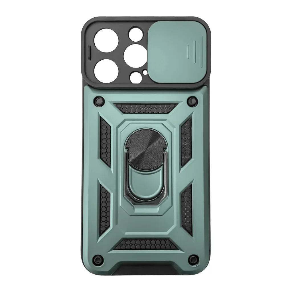 iPhone 15 Pro Ring Lens tok kameralencse védővel, kihajtható mágneses támasszal zöld Alphajack telefontok