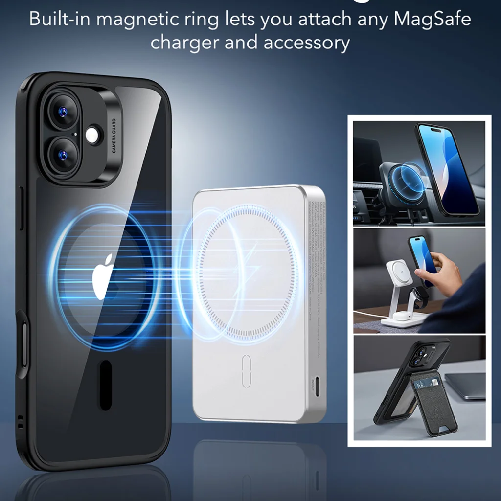 iPhone 16 Átlátszó Fekete ESR Klasszikus Hibrid HaloLock tok