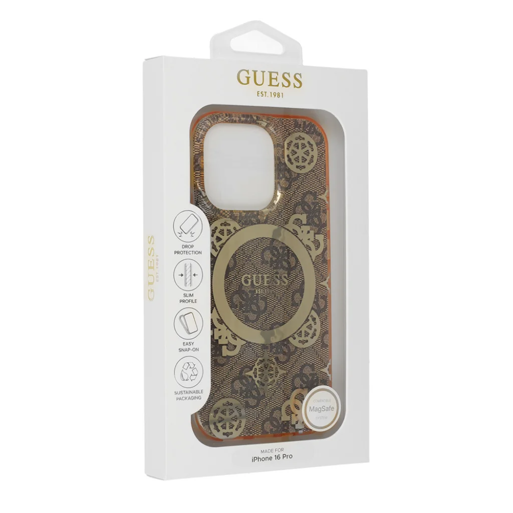 iPhone 16 Pro Barna Eredeti GUESS IML Peony On 4G Background Magsafe GUHMP16LH4PYEEW tok