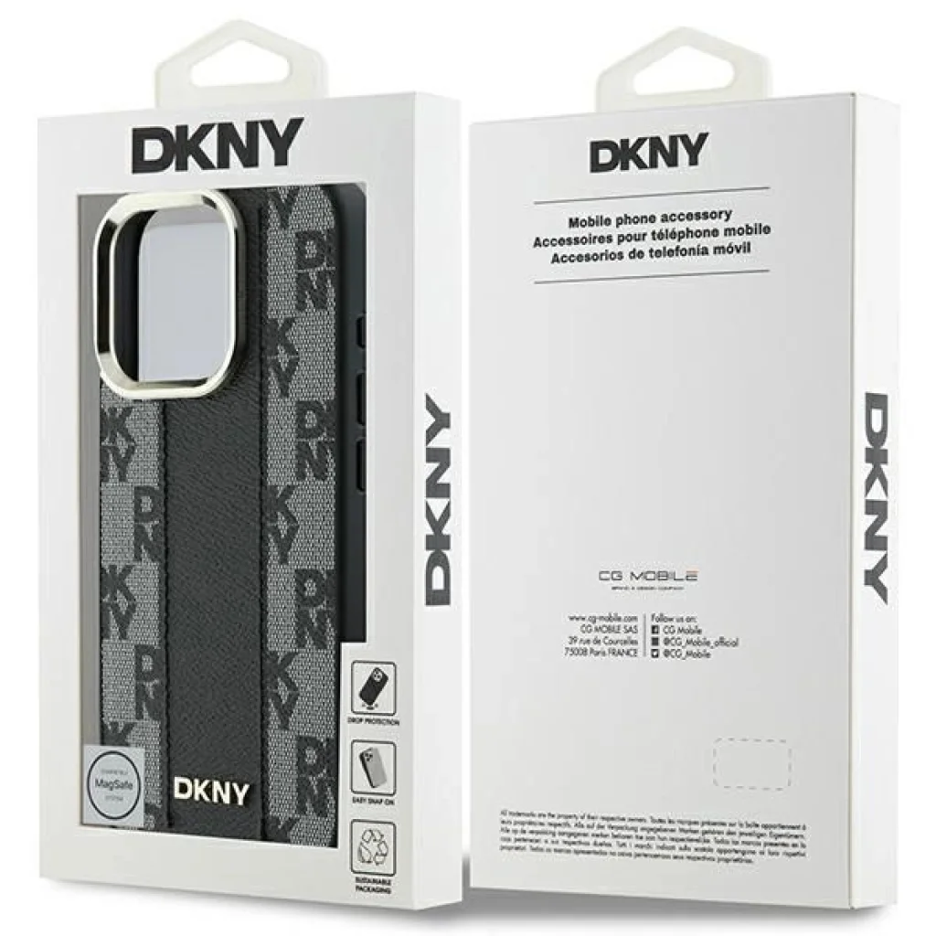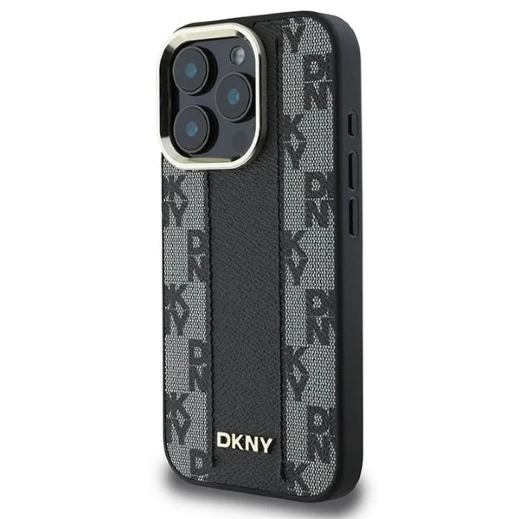 Minden tokot a DKNY márka egyedi kezdőbetűinek mintázata díszíti, amely lenyűgöző sakkmintás motívumot alkot. Ez a jellegzetes minta figyelmet vonz egyediségével és különleges dizájnjával. További díszítésként széles, függőlegesen elhelyezkedő sáv található a tok színvilágában, ami egységes és elegáns összhatást kelt. A dizájn koronája a DKNY márka kis logója, amely kiemeli a kollekció presztízsét és hitelességét.