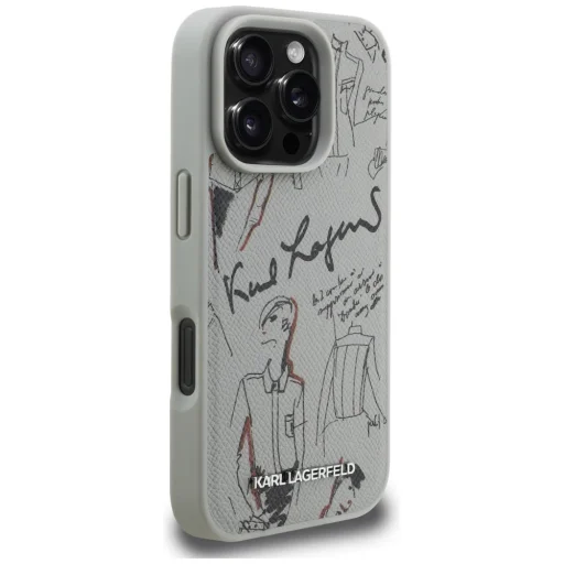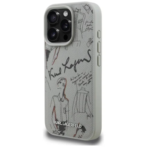 Ez az exkluzív védőtok a neves Karl Lagerfeld márkától a elegancia és az egyedi stílus ötvözete. Magas minőségű, szemcsés textúrájú öko-bőrből készült, amely különleges karaktert és tartósságot kölcsönöz neki. A felület eredeti rajzokkal és Karl Lagerfeld aláírásával van díszítve, az alján pedig a márka logója található, amely kiemeli a kollekció hitelességét.