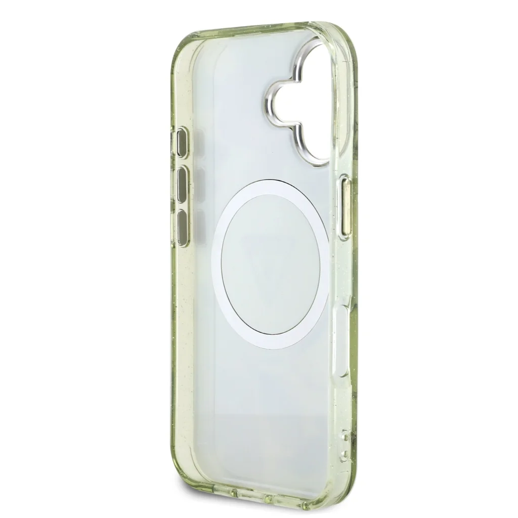 A Guess IML Glitter Magnolia és Háromszög Logós MagSafe hátlap nagyszerű kiegészítő minden stílus és praktikusság kedvelő számára.