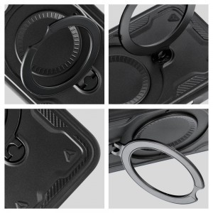 A megerősített szerkezetű és praktikus, kihúzható állvánnyal ellátott tok szilárd megoldás, amely tökéletesen működik a mindennapi használat során. A vezeték nélküli töltéssel való kompatibilitás és a kamera körüli emelt él mind kényelmet, mind pedig védelmet nyújt. A megerősített Armor típusú konstrukció hatékonyan védi a készüléket, és a kéttestű kialakítás tovább növeli a tartósságot. A puha TPU oldalt tökéletesen illeszkedik a telefonhoz, míg a kemény PC hátlap jobb védelmet nyújt az eszköz hátoldalának esés esetén. A tokba rejtett gyűrű stabil állványként funkcionál, lehetővé téve a telefon kényelmes vízszintes elhelyezését - nagyszerű megoldás filmek vagy fényképek nézésekor. Összecsukva a gyűrű beleolvad a tokba, így nem zavarja a töltést vagy az eszköz használatát. A kamera körüli emelt él további védőgátat biztosít az objektíveknek, lehetővé téve, hogy a telefont biztonságosan letegyük anélkül, hogy az objektívek megsérülnének. A tok támogatja a vezeték nélküli töltést, lehetővé téve a töltést és mágneses tartók használatát anélkül, hogy a tokot eltávolítanánk.