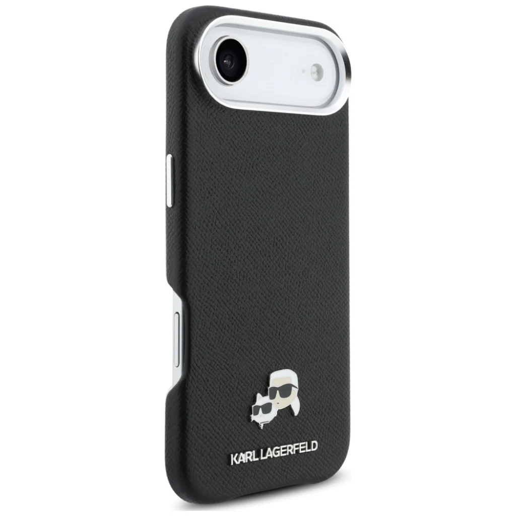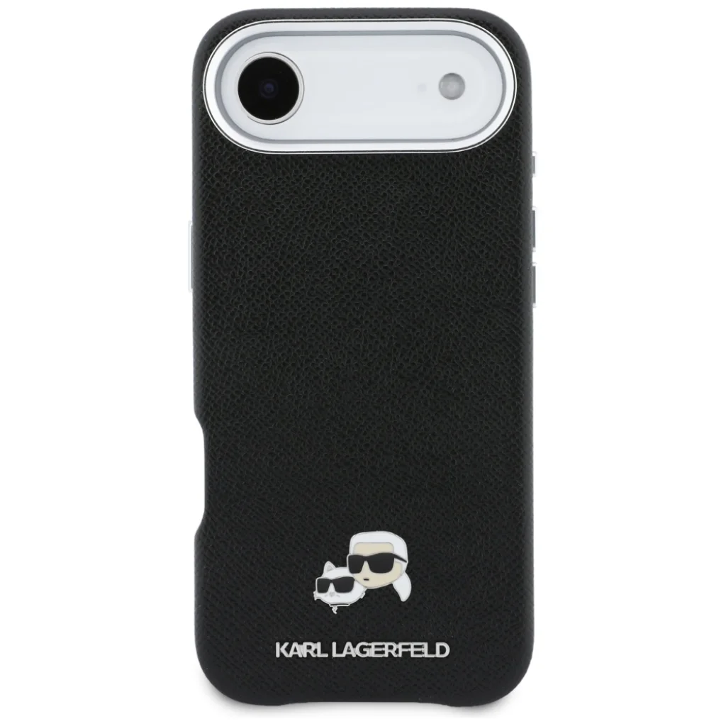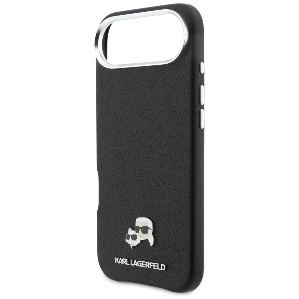 iPhone 17 Air Karl Lagerfeld Karl & Choupette Head Pins Saffiano MagSafe fekete tok