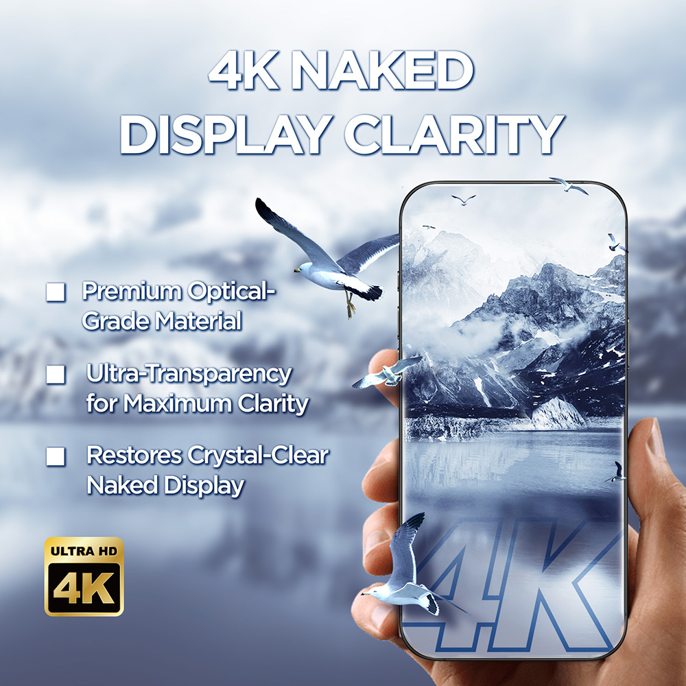 - 4K Naked Display Clarity: Tapasztalja meg a kijelző eredeti, éles és élénk színeit. Prémium optikai minőségű anyagból készült, mely ultra-átlátszóságot biztosít a maximális tisztaság érdekében.