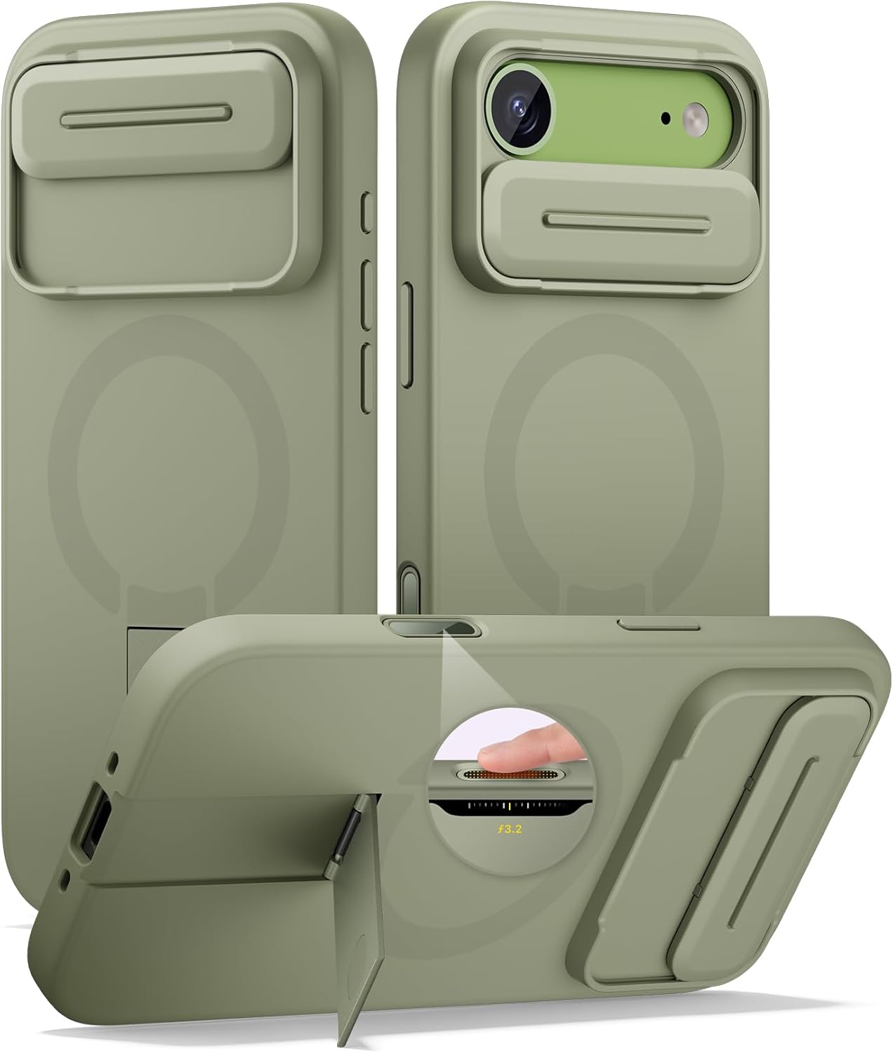 iPhone 17 Air Suritch MagSafe ütésálló tok kihajtható állvánnyal és kameravédővel – Zöld