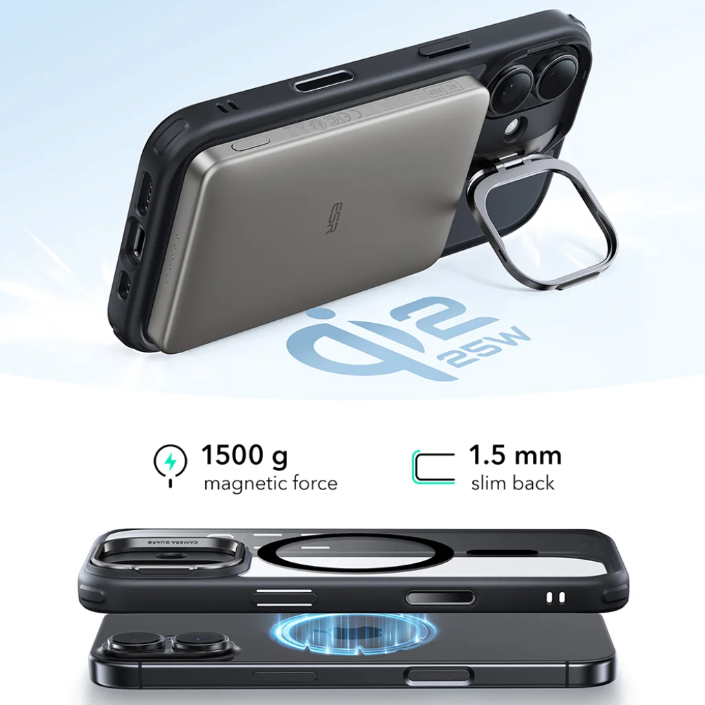 Az integrált HaloLock technológia erős, 1500 grammos mágneses tartóerőt biztosít, garantálva a tökéletes illeszkedést és a stabil töltést minden MagSafe kompatibilis kiegészítővel. Egyszerűen és biztonságosan csatlakoztathatsz MagSafe töltőket, pénztárcákat vagy más kiegészítőket, megszakítás nélkül élvezve a vezeték nélküli technológia előnyeit.