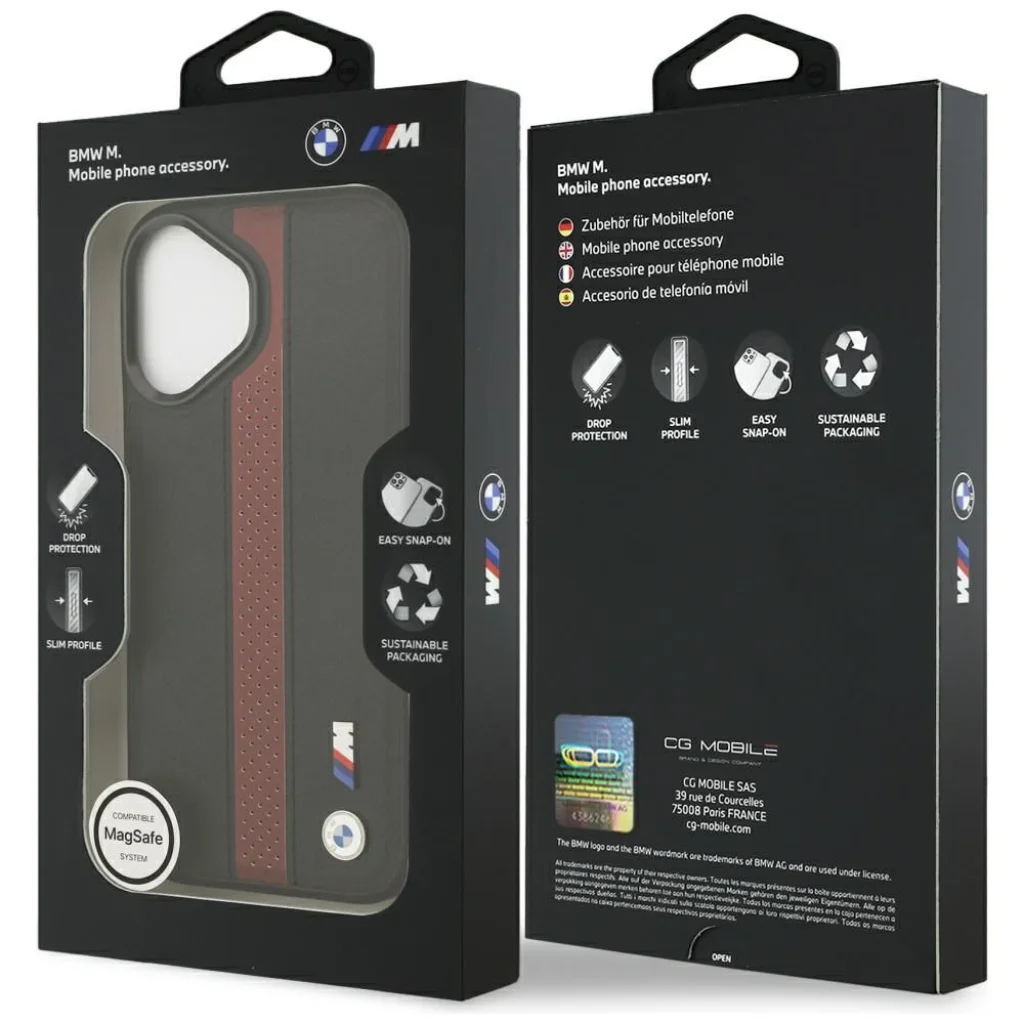BMW M perforált csíkmintás MagSafe tok iPhone 17-hez – Piros
