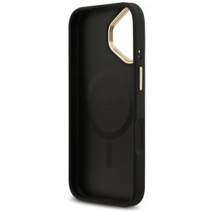 A stílus mellett a funkcionalitás is kiemelkedő. A tok belső oldalán található integrált MagSafe mágnesek biztosítják a zökkenőmentes vezeték nélküli töltést és a MagSafe kiegészítők stabil rögzítését. A csomagban található egy elegáns, Guess logóval ellátott patch, melyet a töltőportnál kell behelyezni, így erre csatlakoztatható a divatos, állítható hosszúságú nyakba akasztható pánt. Ez a megoldás nem csak kényelmes hordozást tesz lehetővé, hanem a telefon leesésének kockázatát is minimalizálja. A precíz kivágások garantálják az összes port és gomb akadálytalan elérését, miközben a tok megemelt élei extra védelmet nyújtanak a kijelzőnek és a kamerarendszernek az asztalra helyezéskor vagy enyhe ütések esetén.
