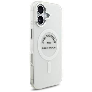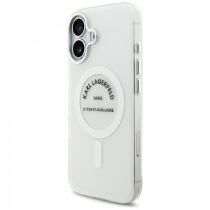- Karl Lagerfeld márkajelzés: A tok hátulján lévő, ikonikus kör alakú "Karl Lagerfeld Paris 21 Rue St-Guillaume" logó azonnal felismerhetővé teszi a prémium márkát, egyedivé téve készülékét, és garantálja az autentikus megjelenést.