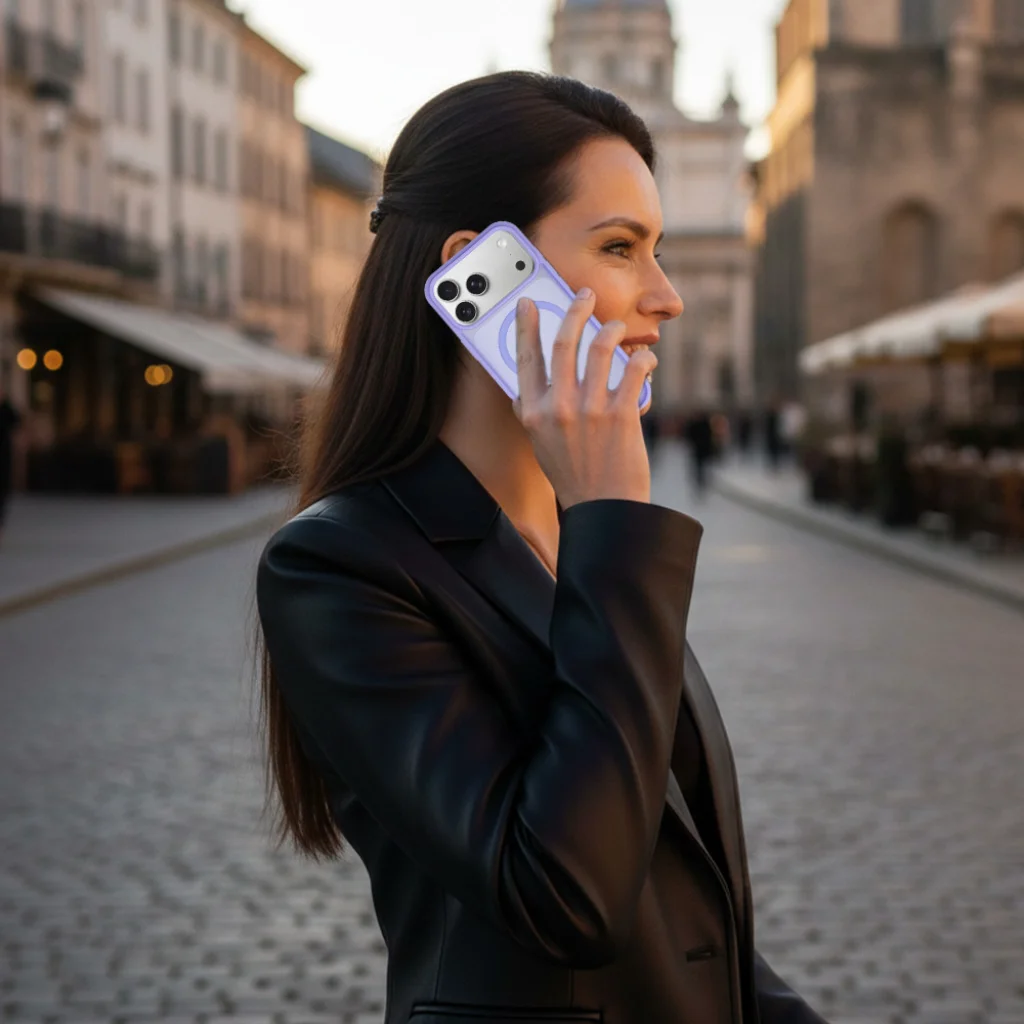 A modern, minimalist case that combines flexible TPU sides with a durable PC back panel. The back is matte and semi-transparent, giving the case a clean, lightweight look while maintaining reliable everyday protection. A built-in magnetic ring ensures MagSafe compatibility, and dedicated lanyard cutouts make it easy to attach a strap for added security.