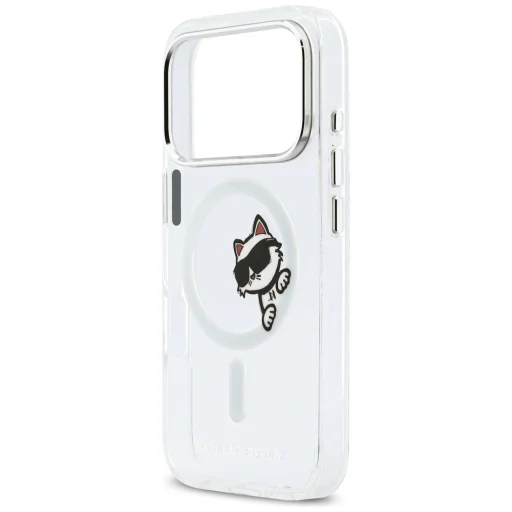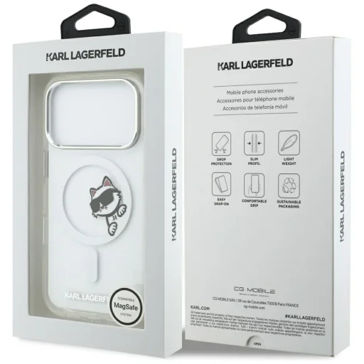 Exkluzív védőtok a neves Karl Lagerfeld márkától, amely eleganciát és egyedülálló stílust ötvöz. A tok PC és TPU anyagokból készül, így biztosítva a tartósságot és a telefon hatékony védelmét. A hátlapot a Choupette macska képe díszíti, amely a MagSafe gyűrű mögül tekint ki. Az egész dizájnt alumínium részletek – a kamera keret és gombok – egészítik ki, amelyek növelik a tartósságot és elegáns karaktert adnak a toknak. Ez a funkcionalitás és a divatos dizájn tökéletes kombinációja, aminek köszönhetően a telefon nemcsak védett lesz, hanem stílusos kiegészítővé is válik.