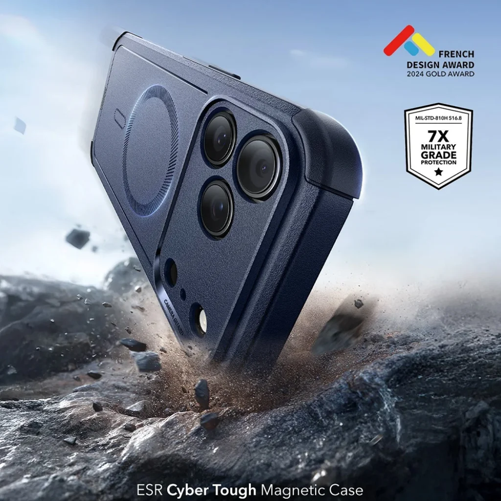 Ez a tok nemcsak rendkívül strapabíró, hanem a 2024-es French Design Award Gold Award díját is elnyerte, ami a forma és funkció tökéletes harmóniáját tükrözi. A masszív, mégis stílusos megjelenésű kék tok tökéletesen illeszkedik az iPhone 17 Pro eleganciájához, miközben kiemelkedő védelmet nyújt.