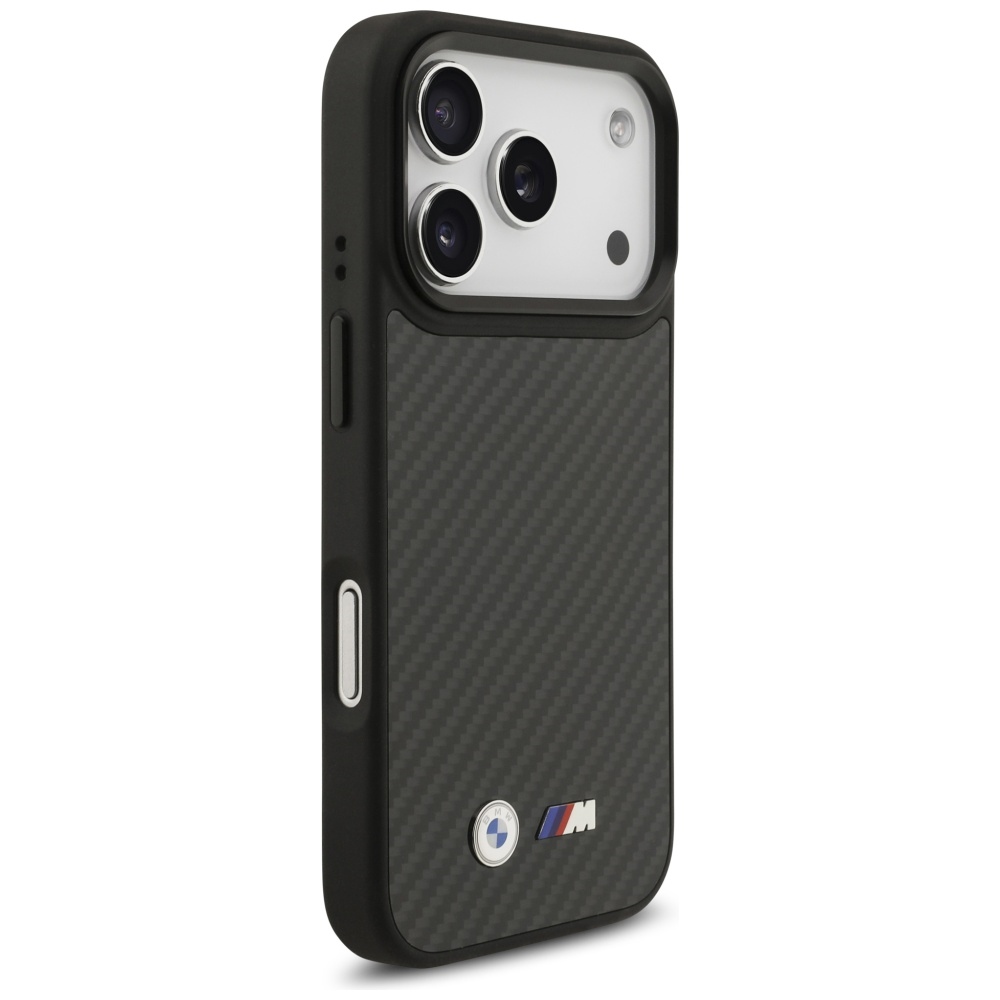 A tok kiváló minőségű, matt fekete Kevlar mintázatú anyagból készült, amely nemcsak prémium tapintást biztosít, hanem ellenáll a karcolásoknak és az ujjlenyomatoknak is. A hátlapon elegánsan helyezkedik el a klasszikus BMW embléma és a sportos M logó, azonnal felismerhetővé téve a márkához való hűségedet. A precíz kivitelezésnek köszönhetően a tok tökéletesen illeszkedik az iPhone 17 Pro készülékedre, kiemelve annak karcsú vonalait, miközben az összes gomb és port könnyen hozzáférhető marad.
