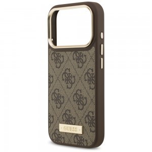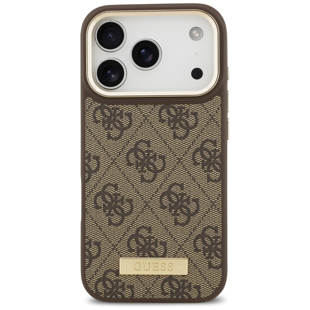 Lenyűgöző stílus és védelem: iPhone 17 Pro Guess 4G Logo Plate MagSafe barna tok