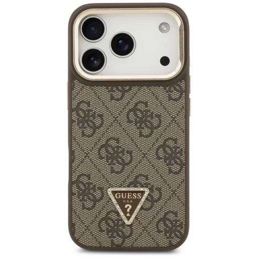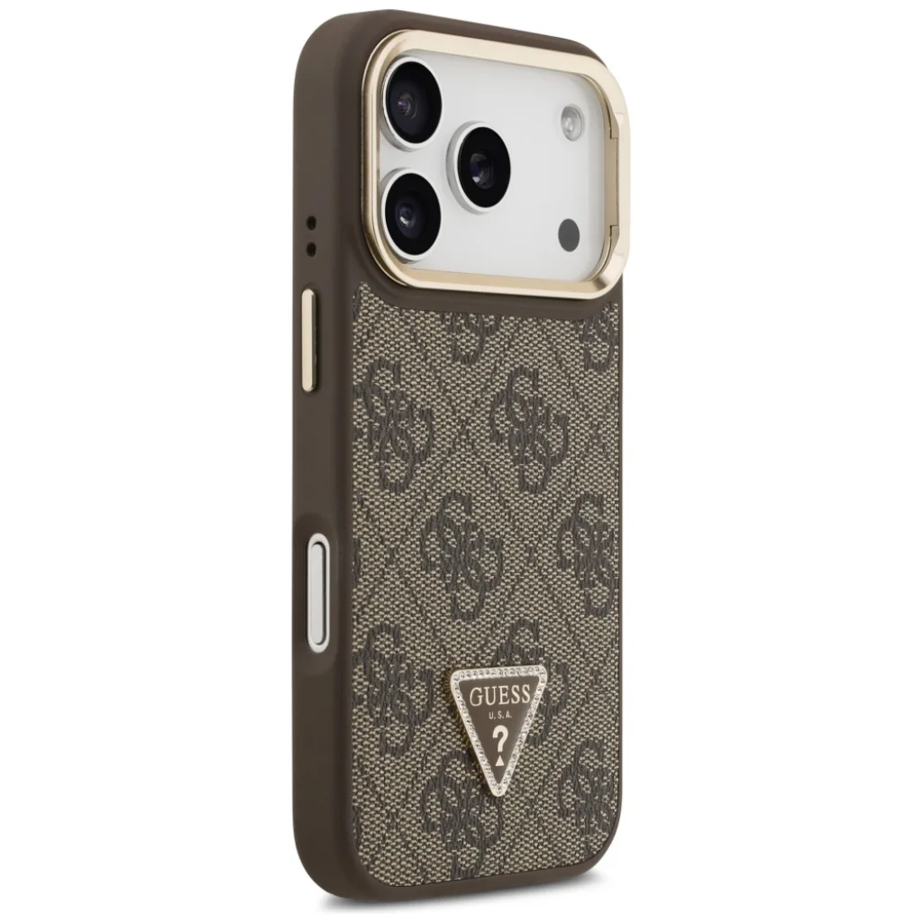 Az exkluzív Guess 4G PU Háromszög Logós & Kitámasztós Kamera MagSafe tok kiváló funkcionalitást és stílusos, egyedi megjelenést kombinál. Ez a kollekció azoknak készült, akik nemcsak a telefonjuk biztonságát, hanem annak elegáns megjelenését is fontosnak tartják. Tökéletes választás minden MagSafe technológiás eszköztulajdonos számára. Az exkluzív védőtok a híres Guess márkától a legfelső szintű eleganciát és stílust testesíti meg. A tok magas minőségű öko-bőr borítással rendelkezik, amely a Guess jellegzetes 4G mintázatát viseli. A kamera kerete és a gombok arany színűek, ami kifinomultságot és eleganciát kölcsönöz. A tok alján található Guess logó finoman hangsúlyozza a kiegészítő presztízsét. Ez a funkcionalitást és az elegáns dizájnt tökéletesen kombinálja, biztosítva, hogy a telefonod ne csak jól védett, hanem divatos kiegészítő is legyen. A praktikus összecsukható állvány kényelmessé teszi a filmnézést, a videohívásokat, vagy a telefon használatát kéz nélkül. Ez a praktikus megoldás nem rontja a tok elegáns megjelenését. Tartós konstrukció és tökéletes illeszkedés jellemzi. A pontosan illeszkedő méreteknek köszönhetően a tok hatékonyan nyeli el a potenciális eséseket, miközben teljes hozzáférést biztosít a portokhoz és gombokhoz. A tok oldalai kellően rugalmasak, így megkönnyítik a fedél felhelyezését és eltávolítását, miközben tökéletesen védik a készülék keretét az ütődésektől és lehetséges kicsorbulásoktól. Az enyhén emelt szélek segítenek megvédeni a képernyőt a sérülésektől, míg a kamera lencséjének körüli kiemelt szélek védik az optikát a töréstől vagy karcolódástól. Töltsd a telefonod vezeték nélkül! A tok mágneses gyűrűvel van ellátva, amely kompatibilis a MagSafe vezeték nélküli töltőkkel, biztosítva a gyors és egyszerű töltést. Az beépített mágnesek tökéletesen igazodnak a készülékedhez, biztosítva a biztos kapcsolatot a MagSafe töltővel. A tok az eredeti Guess licenc alapján készül.