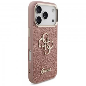 Guess fixen csillámos fémkeretes tok iPhone 17 Pro készülékhez, rózsaszín