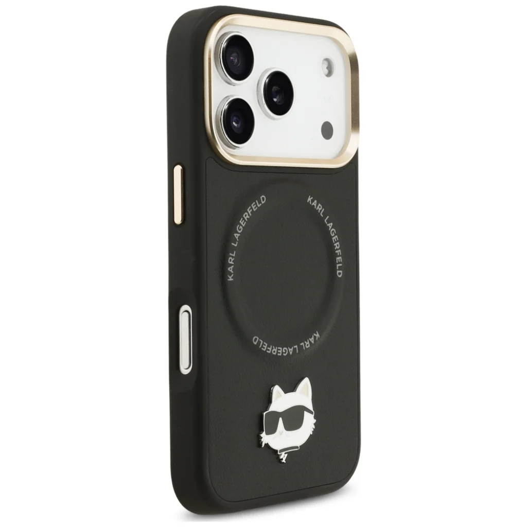 iPhone 17 Pro Karl Lagerfeld Choupette Metal Logo Big Strap MagSafe fekete tok