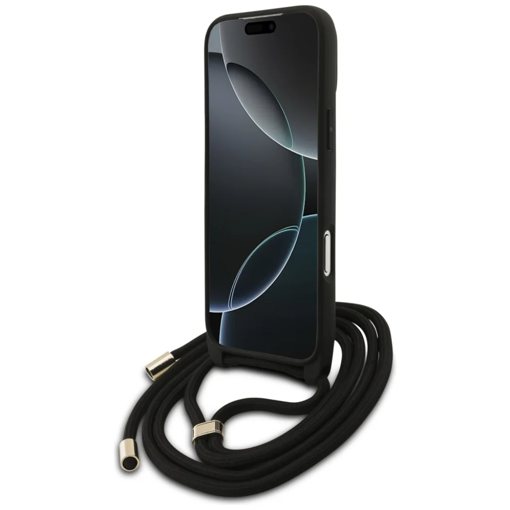 iPhone 17 Pro Max Guess 4G Nagy Logó Kötél Kereszttáskás tok fekete tok