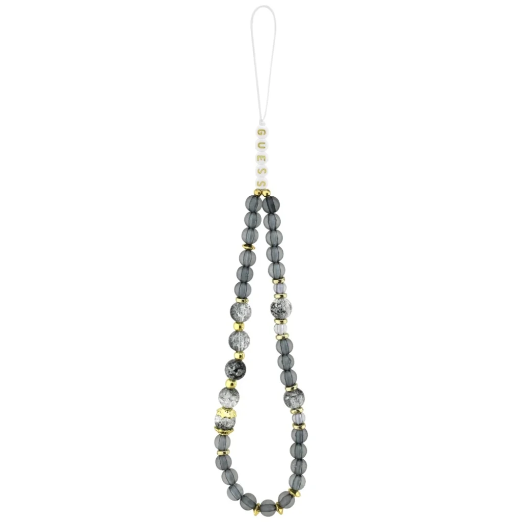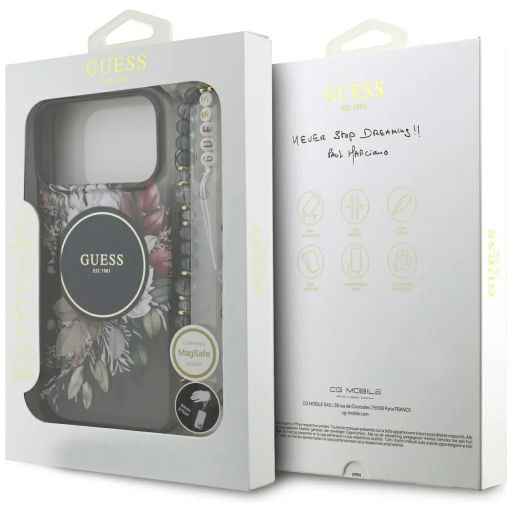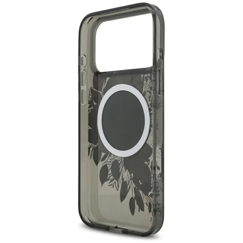 iPhone 17 Pro Max Guess IML Flowers Pearl Strap MagSafe fekete tok