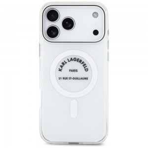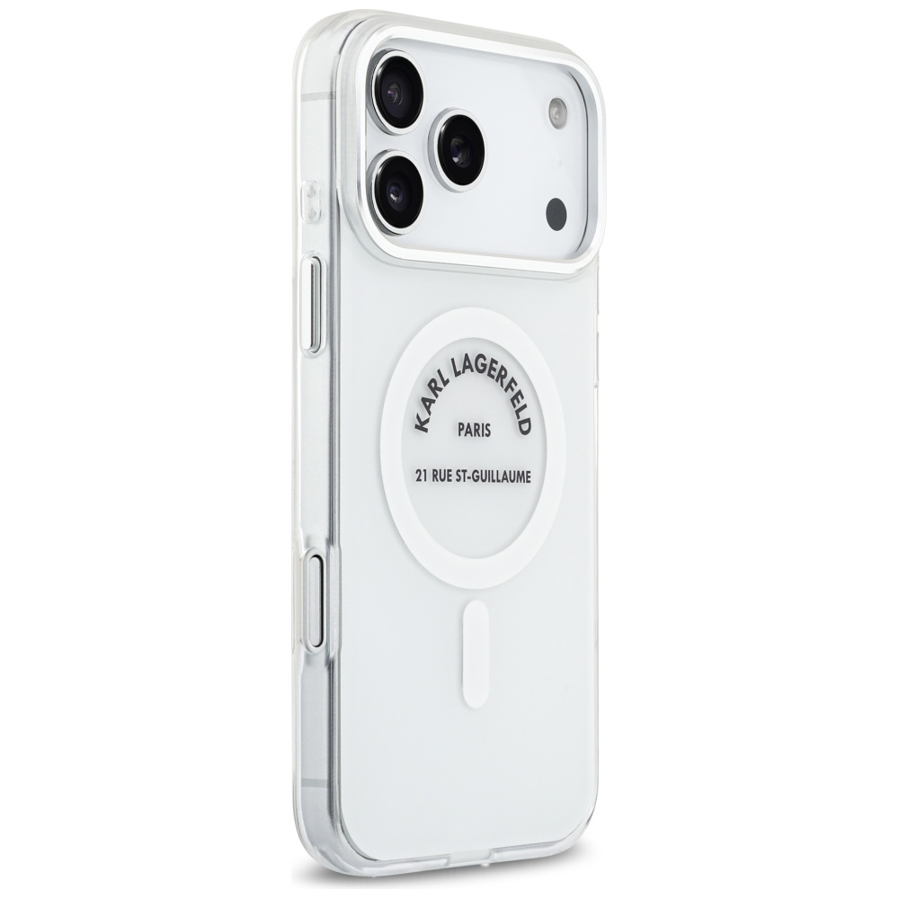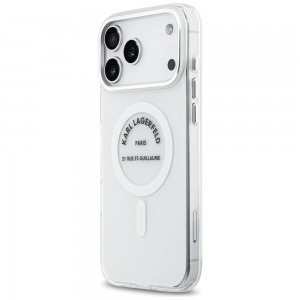 Az iPhone 17 Pro Max Karl Lagerfeld IML Karl RSG Logo MagSafe átlátszó tok a divat és a funkcionalitás tökéletes ötvözete. Kifejezetten az iPhone 17 Pro Max modellhez tervezve, ez a tok a legendás divattervező, Karl Lagerfeld kifinomult stílusát testesíti meg, miközben kiemelkedő védelmet nyújt készülékének.