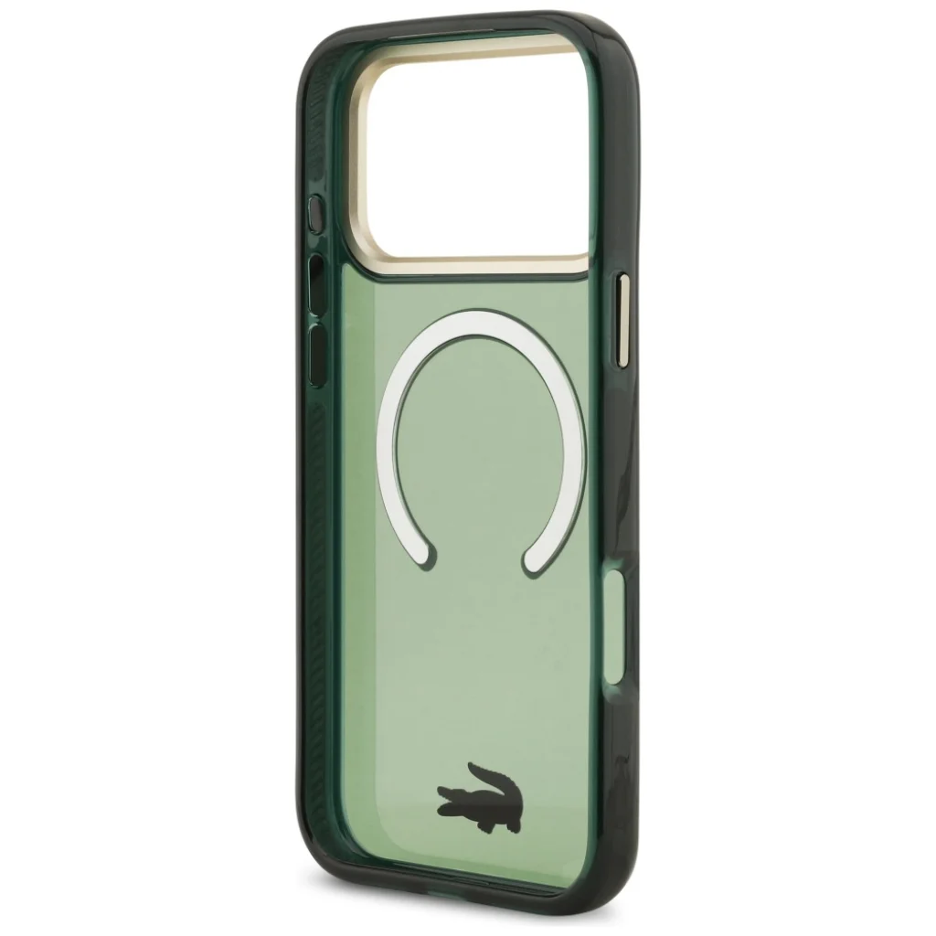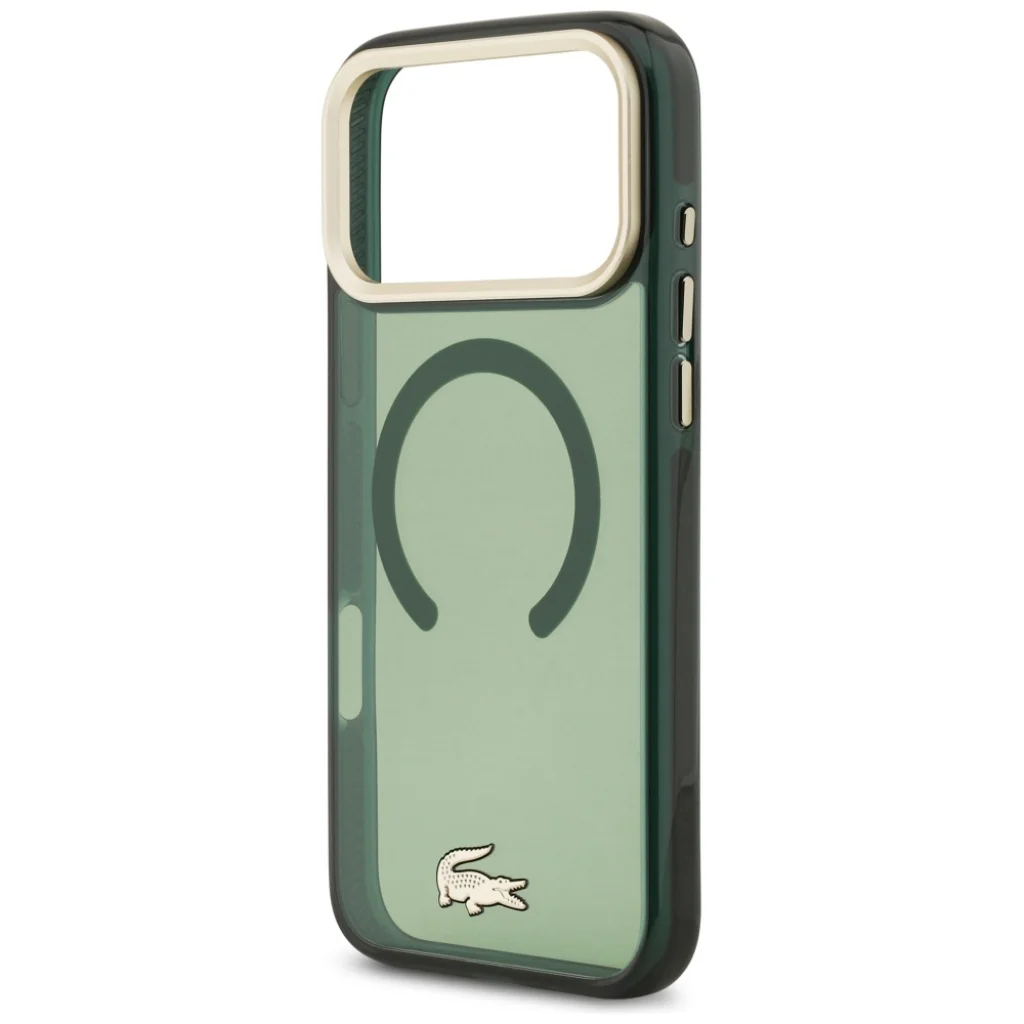 A francia Lacoste márka elegánsan ötvözi a sikkes megjelenést és a sportos kényelmet. Az új védőtok kollekció egyedülálló stílusával és rendkívüli funkcionalitásával lepi meg a vásárlókat, miközben megbízható védelmet nyújt az értékes készülék számára. Ideális választás a MagSafe technológiát kedvelőknek. Az Ütésálló Átlátszó Matt Arany Logó MagSafe kollekció elegáns megjelenést biztosít, és a TPU/PC anyagnak köszönhetően fokozza a készülék tartósságát mindennapi használat során. A fémes arany gombok, a kamera keret és a finom fém Lacoste logó valódi minőségi mestermunka. A tok rugalmas széleivel gyors telepítést és eltávolítást tesz lehetővé. Az enyhén megemelt szélek extra védelmet nyújtanak a képernyőnek és a kamerának. A beépített mágneses gyűrű támogatja a MagSafe vezeték nélküli töltők használatát. A terméket Lacoste márkalicenc alatt gyártják.