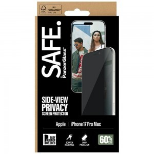 SAFE. by PanzerGlass® Privacy Ultra-Wide Fit a tökéletes megoldás azok számára, akik nemcsak a karcolások és leejtések ellen szeretnék megvédeni telefonjukat, hanem a kíváncsi tekintetek elől is. 60%-ban újrahasznosított üvegből készült, diszkrét légzsákként működik – elnyeli az ütéseket, magas ellenállást biztosít a karcolásokkal és ütésekkel szemben, és beépített magánszféra szűrőjének köszönhetően a képernyő tartalmát gyakorlatilag láthatatlanná teszi a közelben lévők számára.